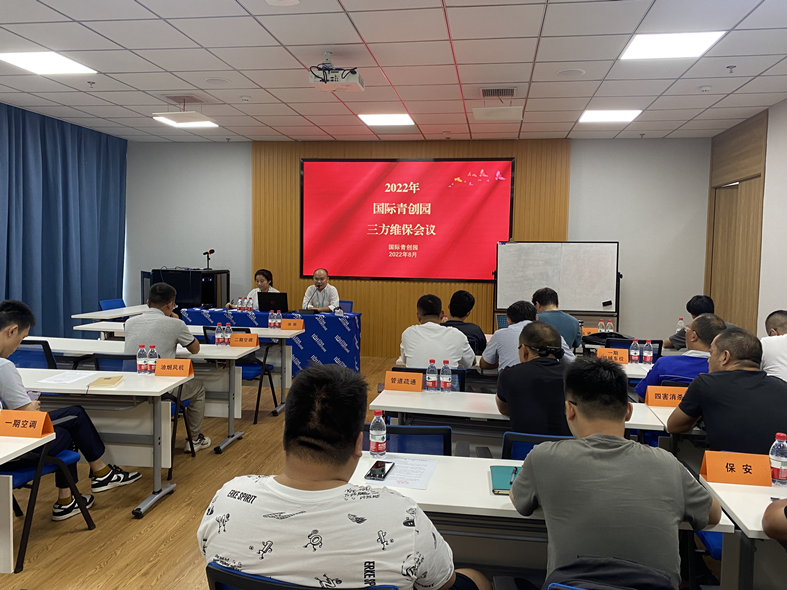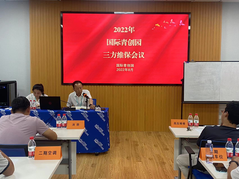 会上,各维保单位代表首先汇报了近期设施设备检查和维护情况,介绍了应对高温、极端天气的工作预案,同时,对需要园区和其他维保单位配合的事项也作了说明。