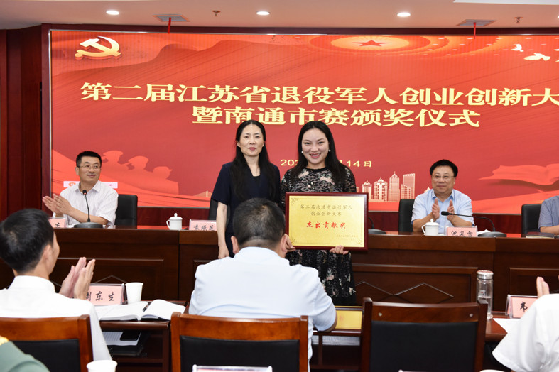 9月14日下午,南通市退役军人事务局召开2022年退役军人创业创新大赛总结表彰大会,星中国际青创园被授予杰出贡献奖,南通市退役军人事务局党组书记、局长周海斌向袁珉芝董事长颁发了奖牌。
