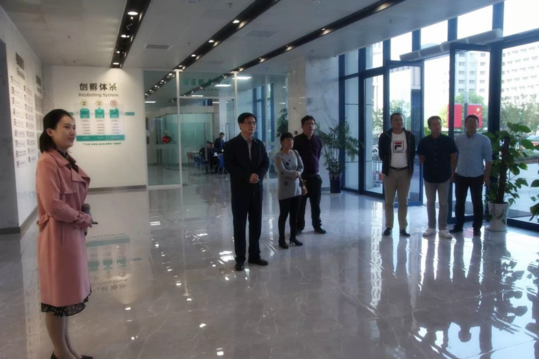 最后,张总带领丁局长一行参观新课堂众创空间,丁局长对园区低成本、便利化、全要素、开放式的创业公共服务平台成果表示肯定。