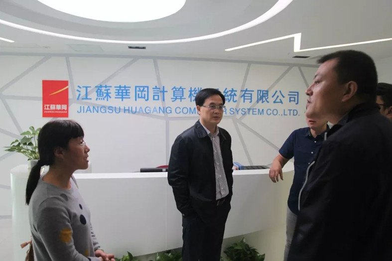随后,丁局长一行来到江苏华冈计算机系统有限公司。华冈副总经理施伟伟详细介绍了他们在智能制造、智能物流、智慧园区、智慧政务四大方面的做法及取得的成绩。