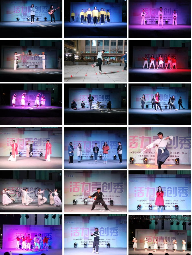2018年11月15日,随着由国际青创园、南通大学团委共同主办的“活力青创秀”的落幕,创新创业发展论坛系列活动也要跟大家说再见啦~ 相信不管是一路之隔的通大学生,或是刚下班匆匆赶路的你,亦是饭后散步的你们,一定都曾被这绚烂的舞台、精彩的表演所吸引。 还觉得意犹未尽?还对活动恋恋不舍?那…只能由小编带领大家再次回味下演出现场了! 01、演出时刻