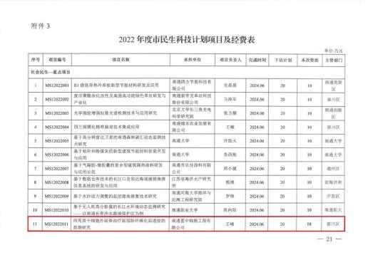 南通星中细胞工程有限公司科研项目获得2022年度南通市社会民生重点专项立项 | |