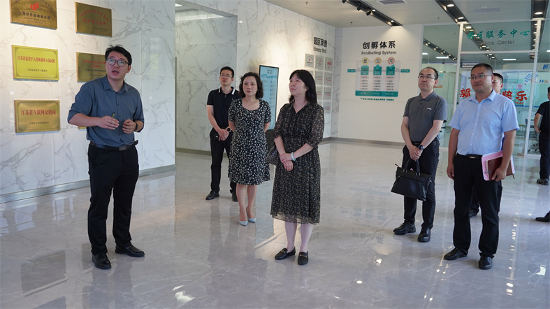 7月4日,省高新技术创业服务中心党委委员、副主任张澄洪一行莅临国际青创园调研,南通科技局高新技术处处长吴永峰陪同,国际青创园董事长袁珉芝、总经理张椋全程接待。