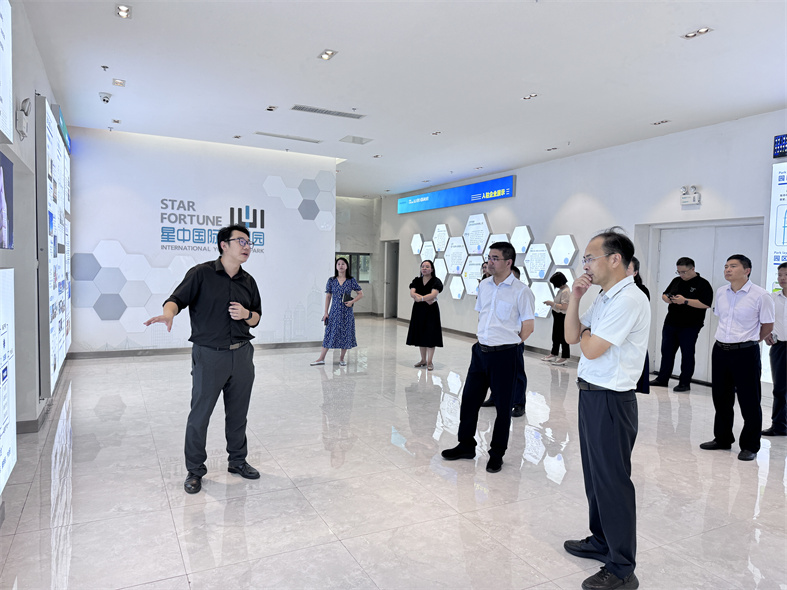星中国际青创园副总经理杨军全程陪同并热情接待了来访团队。姜局长一行首先参观了园区7号楼展厅,杨总详细阐述了园区的发展历程、孵化理念及创新成果,特别是在投融资方面的一些成功案例,展现了园区作为青年友好型双创智慧园区的独特魅力。