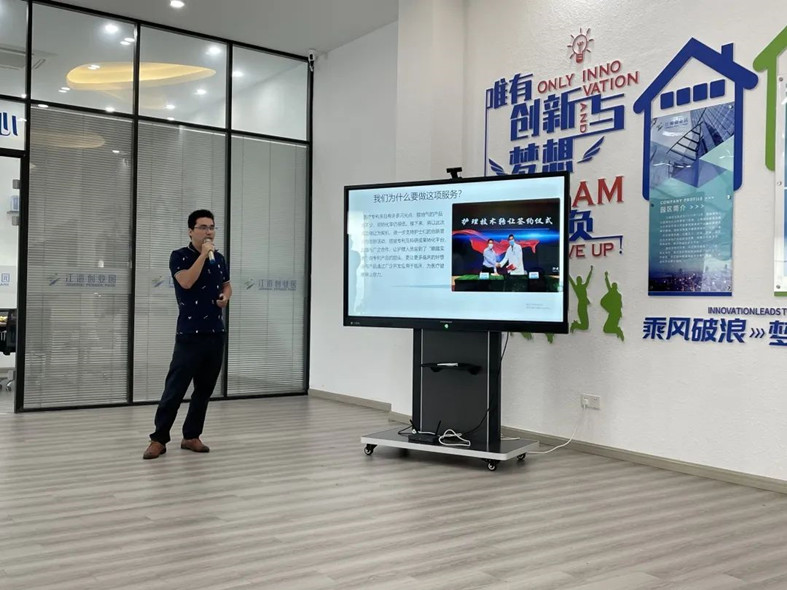 致辞结束后,由上海星中集团产业服务中心经理杨军汇报江海创业园的建设运营情况。杨经理表示在独具星中特色的运营管理模式下,将以专业的服务态度为江海创业园入驻企业提供包括创业辅导、资源对接、投资融资、技术支持等全生命周期孵化服务,帮助在通创业者更快实现自己的梦想,为南通市创新创业、创业带动就业工作添砖加瓦!
