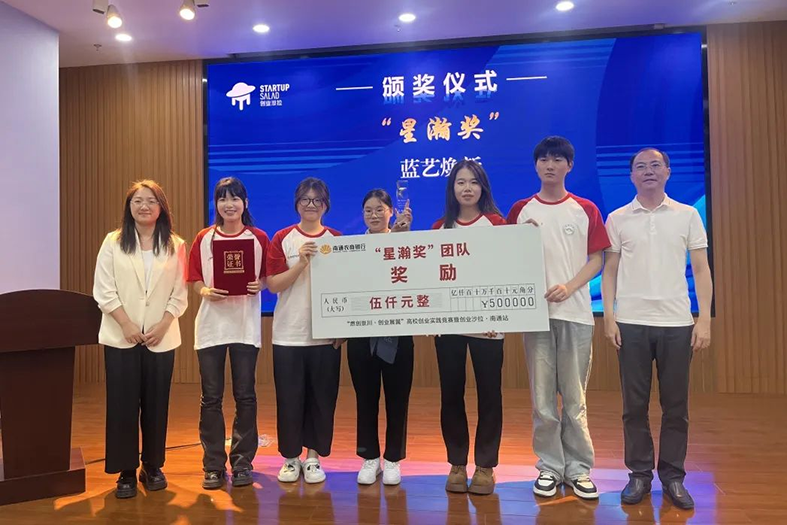 经过激烈角逐,“蓝艺焕新”团队脱颖而出,荣获“星瀚奖”。本次赛事优胜团队除了能获得奖杯及奖金外,还可获得青创园入驻优惠及创业辅导资格,为项目的落地发展提供有力支持。