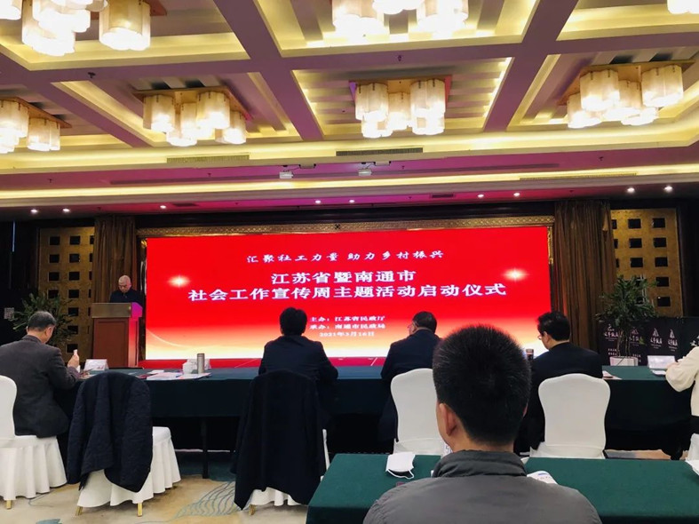 3月16日,江苏省暨南通市社会工作宣传周活动启动仪式在南通市文峰饭店成功举办。本次活动由江苏省民政厅主办,南通市民政局承办。