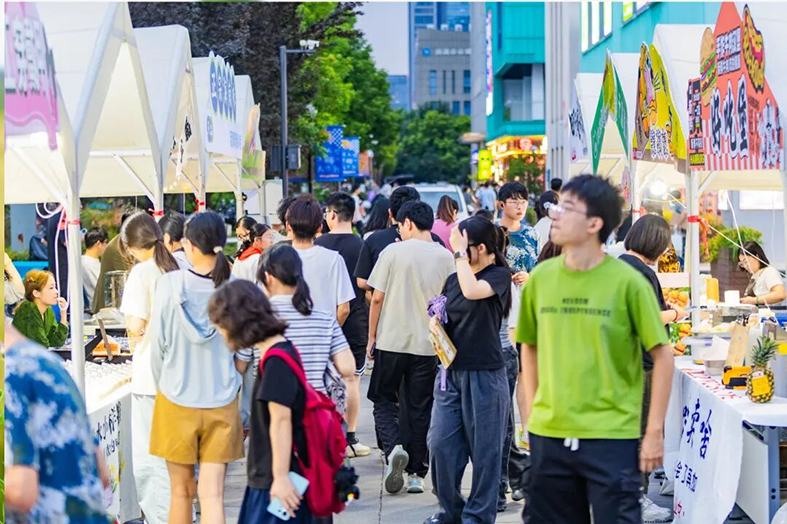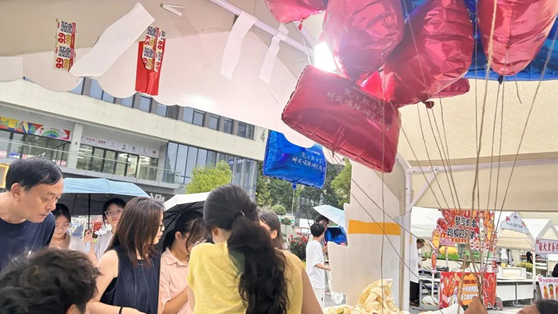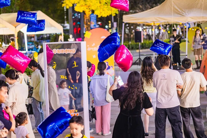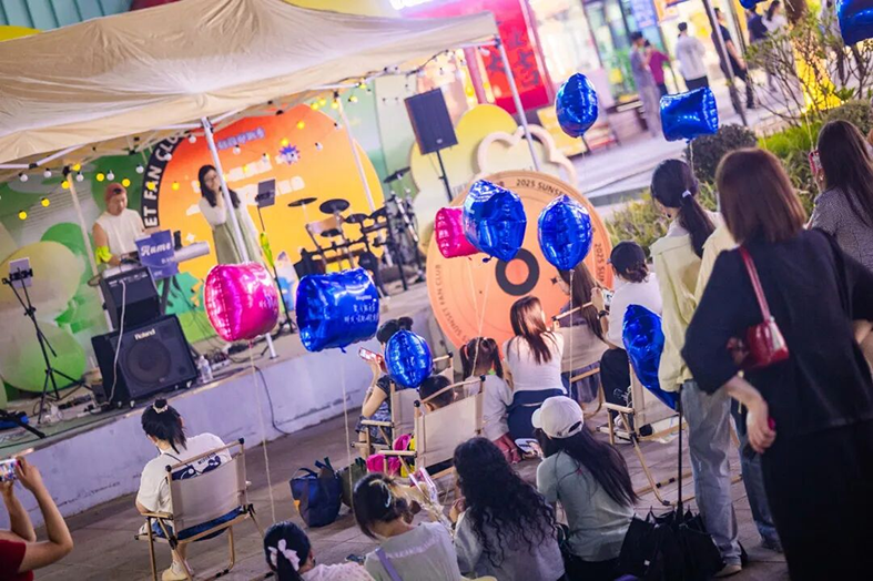 活动现场处处是惊喜。18个市集摊位,吃喝玩乐需求全满足——清补凉摊位前凉意阵阵,绵密冰沙搭配新鲜果料,一口驱散秋日燥热;美味汉堡摊飘出诱人香气,厚实肉饼夹着爽脆生菜,咬下满是满足;捞汁小海鲜摊位更是人气火爆,鲜美的海鲜料理刚出摊就被抢购一空,鲜爽滋味让人回味无穷;还有满是巧思的文创摊位,摆满融合秋日元素与青春创意的手作好物,每一处都值得驻足探索,随手就能淘到心仪小物件。晚上的歌迷会更是将气氛推向高潮,落日余晖下,音乐响起,现场观众跟着节拍摇摆合唱,欢呼声、掌声此起彼伏,青春的活力在园区里尽情释放。